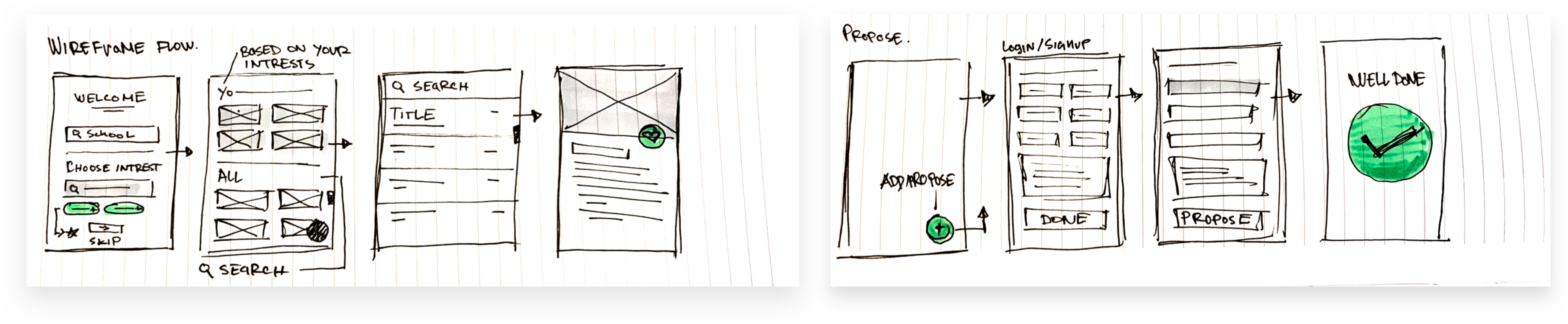 Some early sketches, flows and ideas.